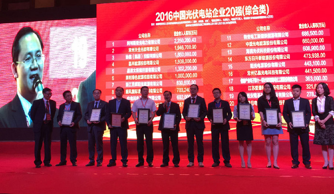 The conference also issued "2016 Top 20 global PV Power Plant Corporations (Miscellaneous)", "2016 China Top 20 PV Power Plant Investment Corporations", "2016 China Top 20 PV Modules Corporations", "2016 China Top 20 PV Inverter Corporations"," 2016 China Top 20 PV Mounting Corporations."