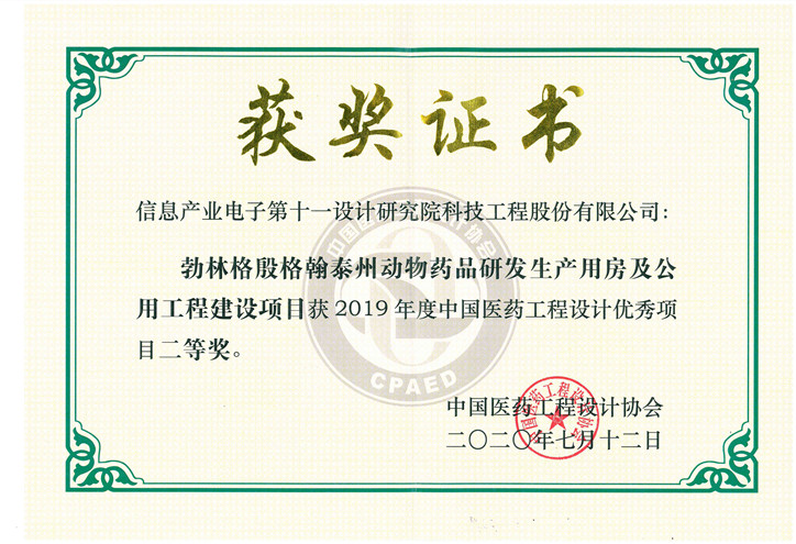 勃林格殷格翰泰州動(dòng)物藥品研發(fā)全國(guó)醫(yī)藥二等獎(jiǎng)